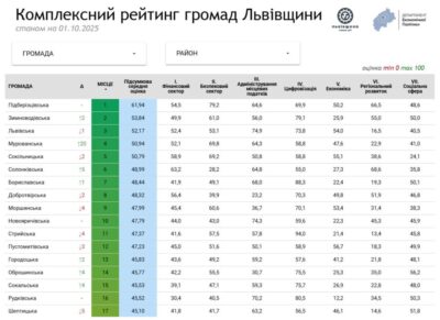 Рейтинг оновлюється щомісяця, щоб показати, як громади області ефективно використовують ресурси, реалізують соціальні ініціативи та реагують на виклики воєнного часу.