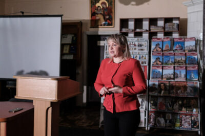 Вона також розповіла про нові напрями діяльності закладу. Бібліотека активно надає онлайн-послуги, розвиває міжнародну співпрацю, зокрема – із суботніми та недільними школами українського закордоння. У серпні було започатковано роботу з недільною школою у Відні. При бібліотеці успішно діють хорова капела «Заграва» та вокальний ансамбль «До-Ля-Ре».